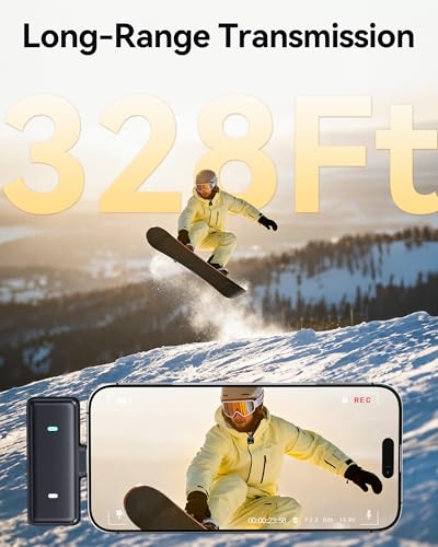 Alcance inalámbrico estable de 328 pies: en un entorno abierto sin obstáculos ni interferencias, el formato de audio de 48 kHz/24 bits del mini micrófono captura con precisión cada sonido, y su relación señal-ruido de 70 dB garantiza una excelente señal de audio, asegurando audio ininterrumpido para disparos al aire libre, transmisión en vivo o informes de noticias;