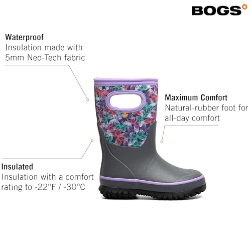 BOGS Grasp – Botas de lluvia impermeables para niños, aisladas para invierno, nieve y barro, con asas fáciles de poner para niños pequeños, niños y niñas, protección para todo tipo de clima