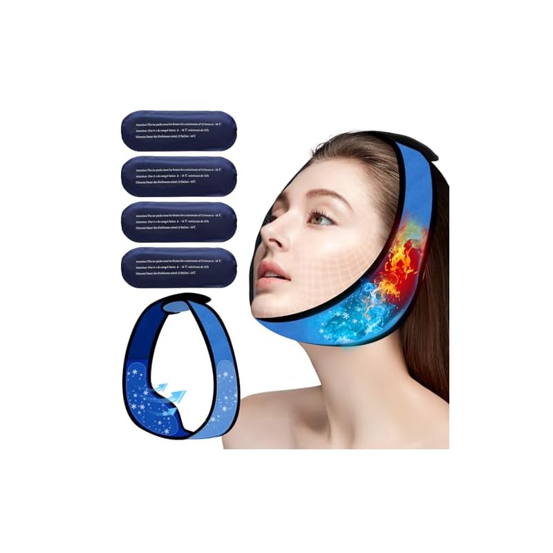 4 Paquetes de Hielo: Esta compresa fría para la mandíbula viene con 4 paquetes de hielo en gel, puede reutilizarlos alternativamente, lo que proporciona eficiencia de uso.