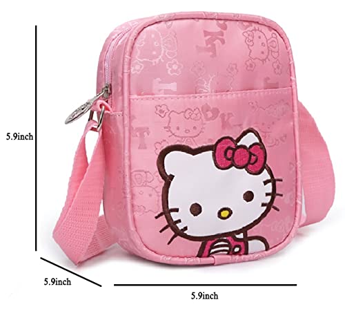 Bonita mini bolsa para niñas, monederos cruzados de lona de gato rosa