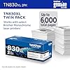 Brother TN830XL 2PK Cartucho de tóner negro de alto rendimiento para impresora, paquete de 2 – Imprime hasta 3,000 páginas cada una(1)