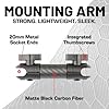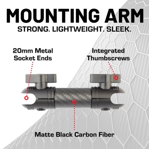 Diseñado para la máxima comodidad del usuario, este brazo de montaje cuenta con tornillos de mariposa fáciles de usar en cada extremo del conector, lo que permite una instalación rápida y directa. Simplemente conecta el brazo a la bola de montaje con unos simples giros, y ya estás listo. Además, disfruta de un ajuste sin esfuerzo, lo que te permite colocar el soporte de tu dispositivo exactamente donde lo desees. Ya sea que necesite inclinar, girar o girar su dispositivo para lograr el ángulo de visión perfecto, este brazo de montaje de fibra de carbono negro mate hace que sea muy fácil.