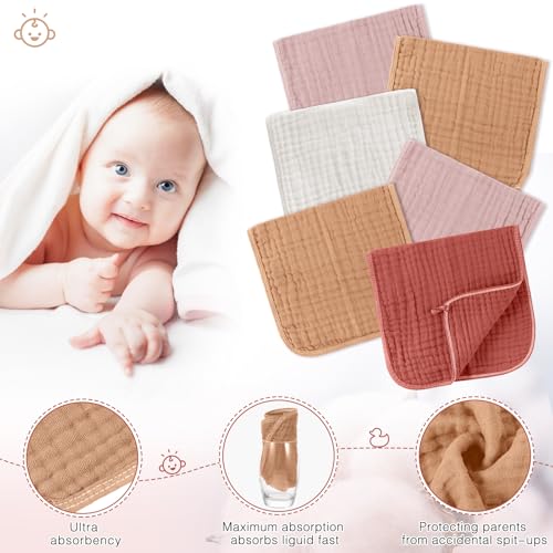 Excelente absorción: con 6 capas de gasa de algodón, estos paños para eructos para bebé ofrecen una buena absorción, lo que los hace ideales para usar como paños para eructos o paños durante la alimentación o el baño; colócalos alrededor del cuello de tu bebé para evitar que la ropa se ensucie y aporte comodidad a tu vida