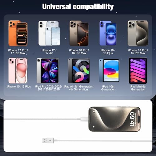 Especificaciones: Cable Carplay de coche para iPhone 17/16/15, iPhone 16/15 Plus17/16/15 Pro 17/16/15Pro Max, cargador USB A a USB C para Carplay USB C, cable USB C para iPad 10, cable de carga de coche iPad Air de 3