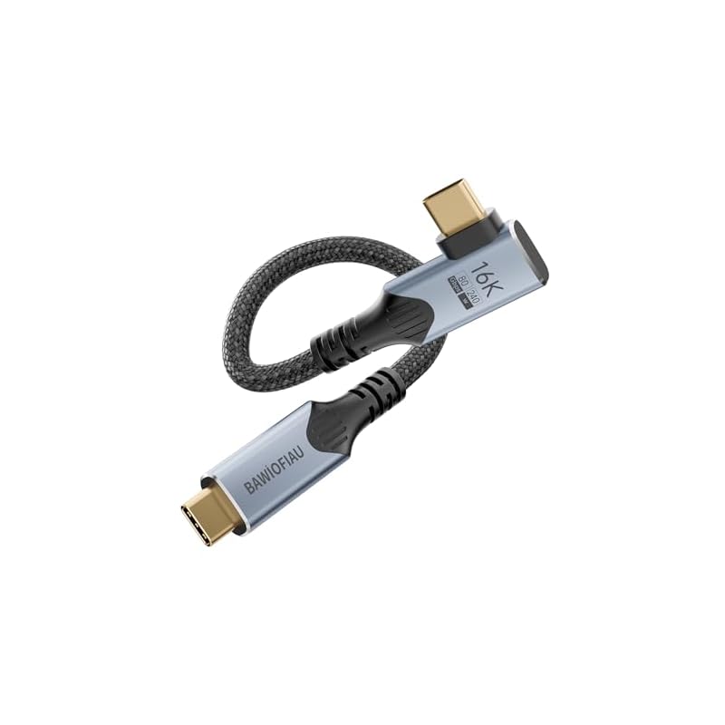 Especificaciones: Cable de datos USB C de 80 gbps compatible con cable Thunderbolt 5, ángulo recto, corto, 1 pie y 240 W, cable USB C de 90 grados, monitor USBC de 8K/16k 120HZ/60Hz para Thunderbolt 4, tipo C
