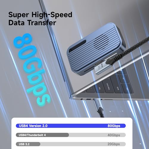 Transferencia de 80 Gbps: USB 5 Alimentación: Este cable USB-C (y cable usbc) aprovecha las velocidades de 80 Gbps de USB 5, lo que lo convierte en un cable de datos USB-C de primer nivel y un cable de transferencia de datos USB-C. Mueva videos 4K/8K, modelos 3D o conjuntos de datos en segundos, perfecto para profesionales y entusiastas que confían en un cable usbc a usbc de alto rendimiento para un flujo de trabajo instantáneo.