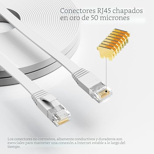 El cable de conexión UTP (par trenzado no blindado) con conectores RJ45 chapados en oro está fabricado con cable de cobre 100 % desnudo, lo que garantiza un nivel mínimo de ruido e interferencias