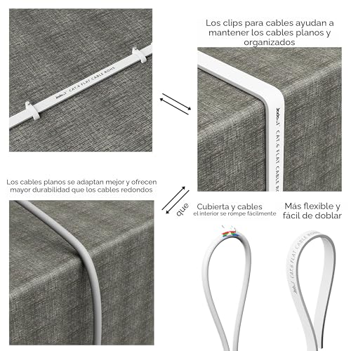 La forma única de cable plano permite una instalación más limpia y segura. Puedes hacer que el cable pase fácilmente y sin problemas a lo largo de las paredes, seguir los bordes y esquinas o incluso hacerlo completamente invisible deslizándolo debajo de una alfombra.