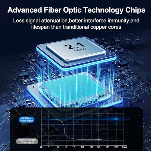 Cable HDMI de fibra óptica de 8 k: cable HDMI de 20 pies diseñado con la tecnología de fibra óptica más avanzada para una mayor ligereza, garantiza una transmisión de datos ultrarrápida, menos atenuación de la señal, mejor inmunidad a las interferencias y vida útil 10 veces más larga que los cables de cobre. Ideal para instalaciones en la pared y renovación del hogar