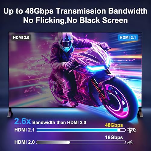Cable HDMI 2.1 mejorado: el cable HDMI 8K se ajusta a la versión HDMI 2.1 estándar, compatible con versiones 2.0 / 1.4 / 1.2 / 1.1. Su velocidad de transmisión tiene un salto cualitativo, de 18Gbps a 48Gbps, y ya no habrá marcos atascados o caídos al ver video, el cable HDMI de 20 pies soporta 8K@60Hz y 4K @120Hz, también compatible con HDR10, eARC, 3D, HDCP 2.3