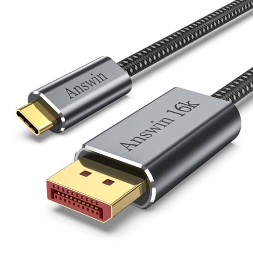 Cable USB C a DisplayPort, 16K @30Hz, 8K @120Hz, 4K @144Hz, DisplayPort 2.1 nailon trenzado [compatible con Thunderbolt 3/4] para MacBook Pro, iPad, Dell XPS, iPhone 16/15, Galaxy S25