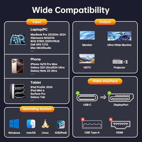 [Compatibilidad universal USB-C] Compatible con Thunderbolt 3/4, MacBook Pro/Air, Dell XPS, Surface Pro, S25/S24/Note 25/24, iPad Pro, RTX 3080+ GPU (a través de salida USB-C).