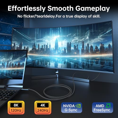 [Resolución inmejorable de 16K] Cable USB C a DisplayPort, experimenta una innovadora ultradefinición de 16K @30Hz (7680×4320), 4 veces más nítido que 4K. Soporta 8K @120Hz/4K @144Hz para juegos y edición de video sin problemas.