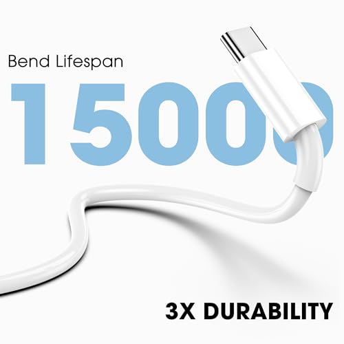Cable de carga USB C duradero – Vida útil de más de 15000 dobleces: fabricado con material TPE de alta calidad, este cable se siente como el cable de carga original, suave, flexible y suave al tacto. Resiste los enredos y está diseñado para soportar más de 15,000 curvas para un rendimiento duradero sin agrietarse ni deshilacharse.