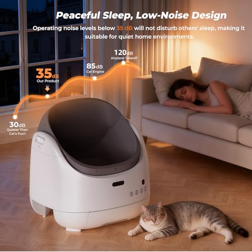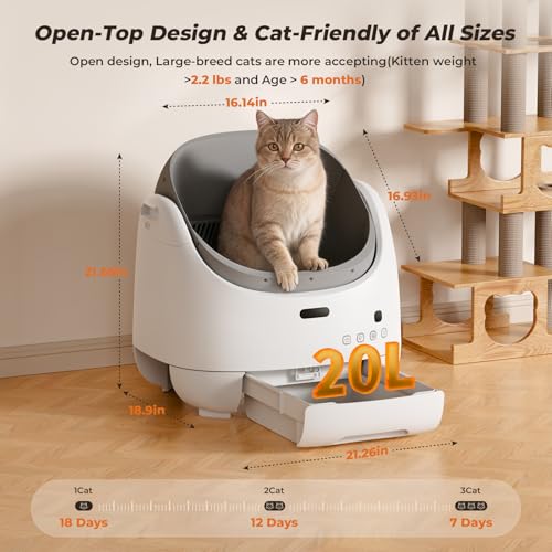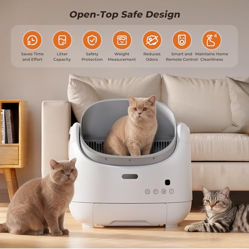 Hogares felices con varios gatos: L. a. caja de enviornment automática FurTech para varios gatos cuenta con una generosa capacidad de 100 litros, diseñada para acomodar cómodamente gatos que pesan entre 2.2 y 22 libras. Después de cada uso, L. a. función de autolimpieza inteligente integrada se activa automáticamente para mantener un espacio fresco e higiénico para tu gato. Esto hace que L. a. caja de enviornment autolimpiante sea una solución ideal para hogares con varios gatos, proporcionando una higiene y comodidad constantes mientras apoya el bienestar de todos tus compañeros felinos. (Menos de 2.2 libras o 6 meses, enciende el modo gatito y utiliza limpieza handbook)
