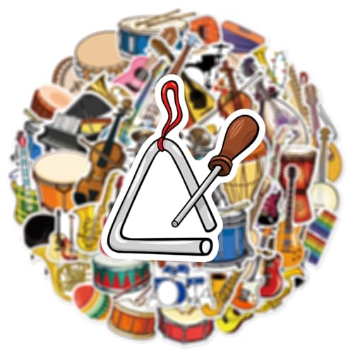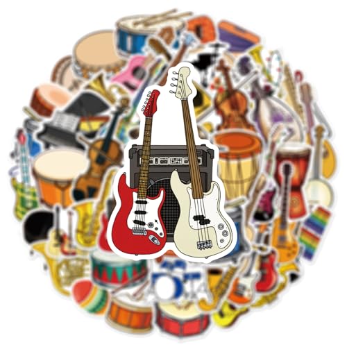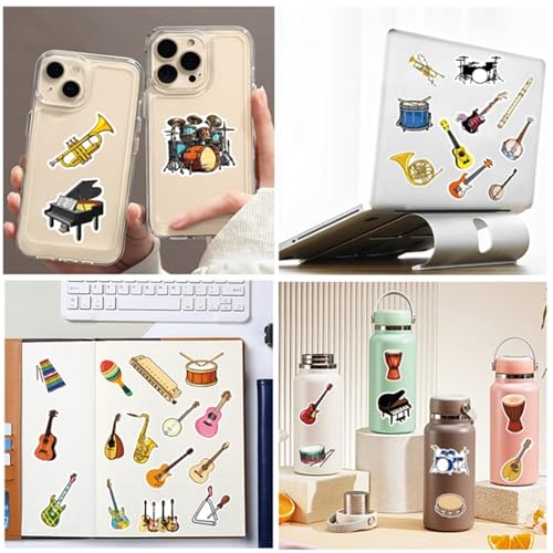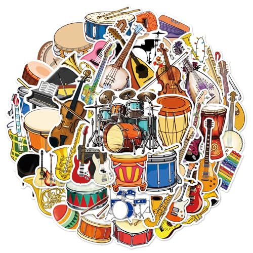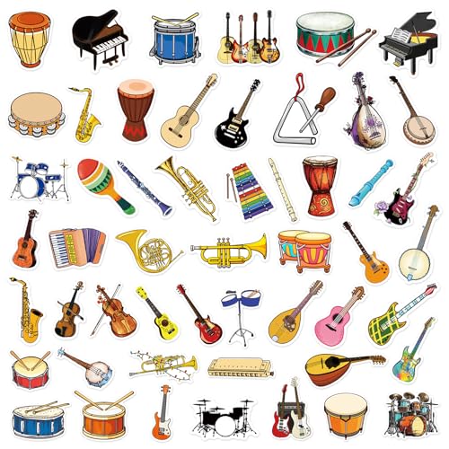 Calcomanías de instrumentos musicales – Tamaño: 1.96-3.15 pulgadas (2.0-3.1 in). Perfecto para embellecer laptops, trackpads, teclados, mochilas, monopatines, equipaje, botellas de agua, álbumes de recortes, espejos, cuadernos, diarios, automóviles, parachoques, bicicletas, dormitorio, funda de viaje, motocicleta, snowboard. Siéntete libre de personalizar tus pertenencias, hacer que tu personalidad brille