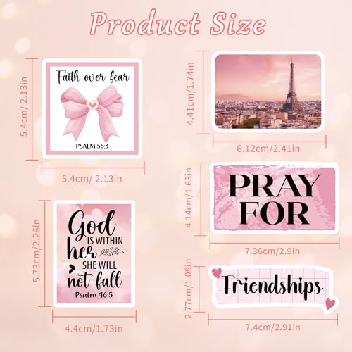 Especificaciones: Calcomanías de la Biblia de tablero de oración rosa, 50 calcomanías inspiradoras, calcomanías de oración para tablero de visión, diario, álbum de recortes, taza para laptop, citas motivacionales
