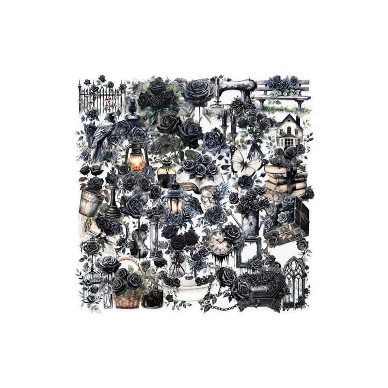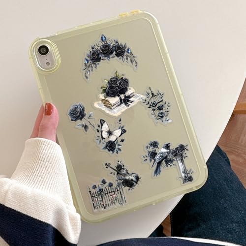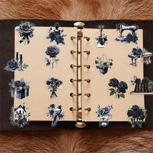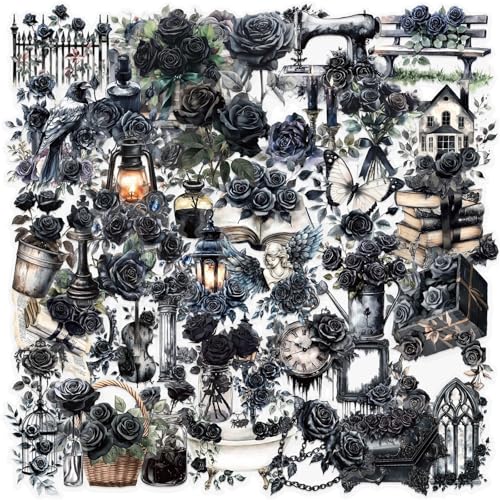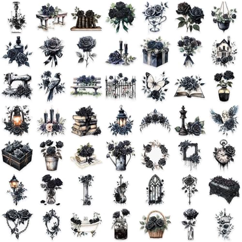 Calcomanías transparentes góticas oscuras – 50 unidades de calcomanías románticas de rosas negras para álbumes de recortes, diario, decoración gótica, planificador, Kindle, laptop, calcomanías góticas