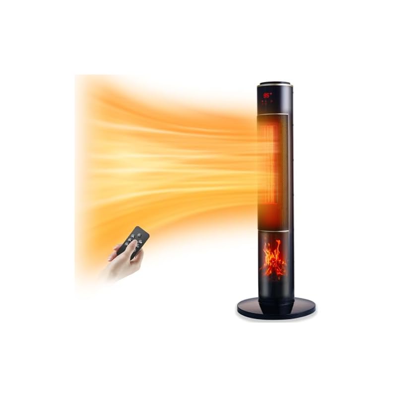 Calentador de espacio con llama de chimenea 3D: este calentador de espacio con efecto de llama 3D simulado en la parte inferior es perfecto para sala de estar/dormitorio/cafetería, puede crear un ambiente acogedor y convertirse en una decoración única en invierno. La llama está diseñada con un diseño fácil de usar y se puede encender y apagar individualmente. El diseño único de este calentador de torre con tamaño delgado (37 pulgadas de altura) te da mucho espacio para ahorrar, puedes llevar la calidez a cualquier lugar de tu hogar y disfrutar de un invierno acogedor con tu familia