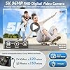 CÁMARA DIGITAL 5K 96MP ACTUALIZADA: Equipado con sensor de imagen IMX415 CMOS, la cámara digital 5K para fotografía puede capturar video verdadero 5K (5120 × 2880) e imágenes de hasta 96 MP (11264* 8448) con detalles increíbles y colores naturales vibrantes. Combinado con antivibración y una linterna incorporada, la cámara digital de apuntar y disparar garantiza eficazmente imágenes estables y claras incluso en condiciones de poca luz o de acción rápida.