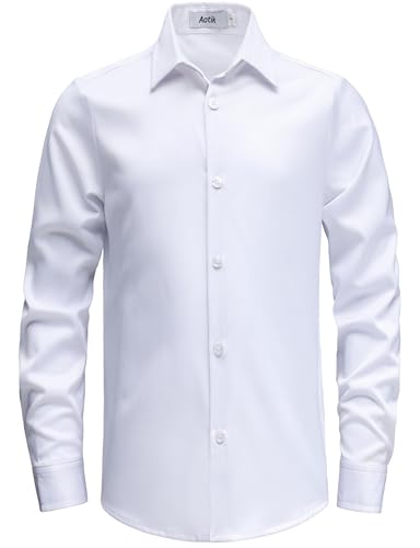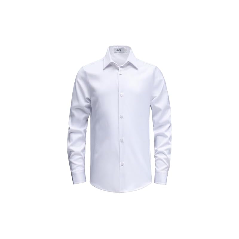 Especificaciones: Camisas de vestir elásticas sin arrugas para niños, camisa de manga larga, camisas formales de uniforme escolar