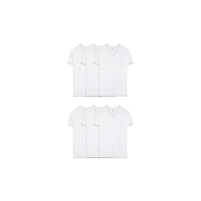 Camiseta Fruit of the Loom para hombre, remetida y con cuello en V, playera con cuello en V., L, Ajuste clásico, color blanco, paquete de 6 unidades.