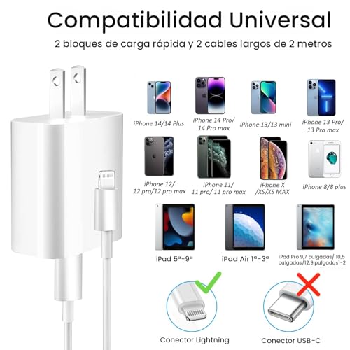 Compatible con todas las series de iPhone / dispositivos Lightning: juego de 2 paquetes para uso familiar y regalo para amigos de respaldo para cargador de iPhone de carga rápida iPhone 14/iPhone 14 Plus/iPhone 14 Pro/iPhone 14 Pro Max/iPhone 13/13 Mini/13 Pro/13 Pro Max/iPhone 12/12Pro/12 Pro Max/12 Mini/iPhone 11/11 Pro/11 Pro/11 Pro/11 Pro/11 Pro/11 Pro/11 Pro/11 Pro/11 Pro/11 Pro/11 Pro/11 Pro/11 Pro/11 Pro/111 Pro Max/iPhone SE 2020/iPhone XS/XS Max/X/XR/8/8 Plus, iPad Pro, AirPods Pro. Este cargador rápido para iPhone también funciona para iPhone 7/7 Plus/6s/6s Plus/6/6 Plus/SE/5s/5/5c con velocidad de carga estándar.