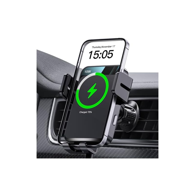 Cargador inalámbrico para automóvil, soporte de automóvil MOKPR con sujeción automática de 15 W/10 W/7.5 W, carga rápida, ventilación de aire, soporte de teléfono para automóvil, compatible con iPhone