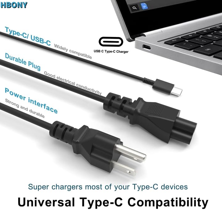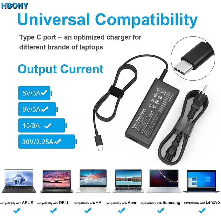 Especificaciones: Cargador universal para Chromebook USB-C compatible con Hp/Lenovo/Dell/Asus/Samsung/Acer 45W 65W USB C cargador de computadora portátil tipo C, Thinkpad/Yoga/Envy/Elitebook/Spectre x360 2/Latitude