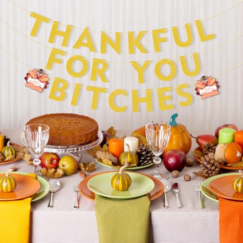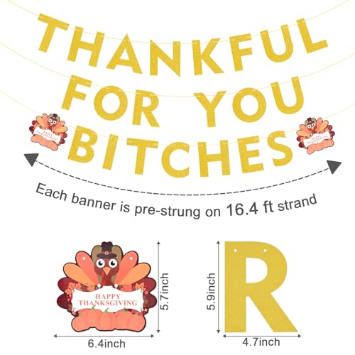 Especificaciones: Cartel de decoración de fiesta de Friendsgiving con espirales colgantes, decoración de agradecimiento con purpurina dorada para niña, oficina en casa, pancarta de regalo de amigos, decoraciones de