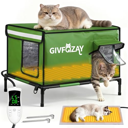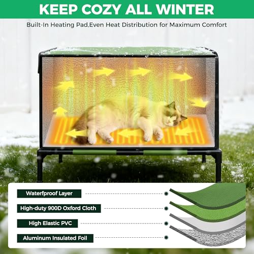Casa para gatos con calefacción para uso exterior, tela Oxford 900D, casa exterior para gatos resistente a la intemperie con almohadilla térmica de control remoto, casas aisladas para gatos con pies