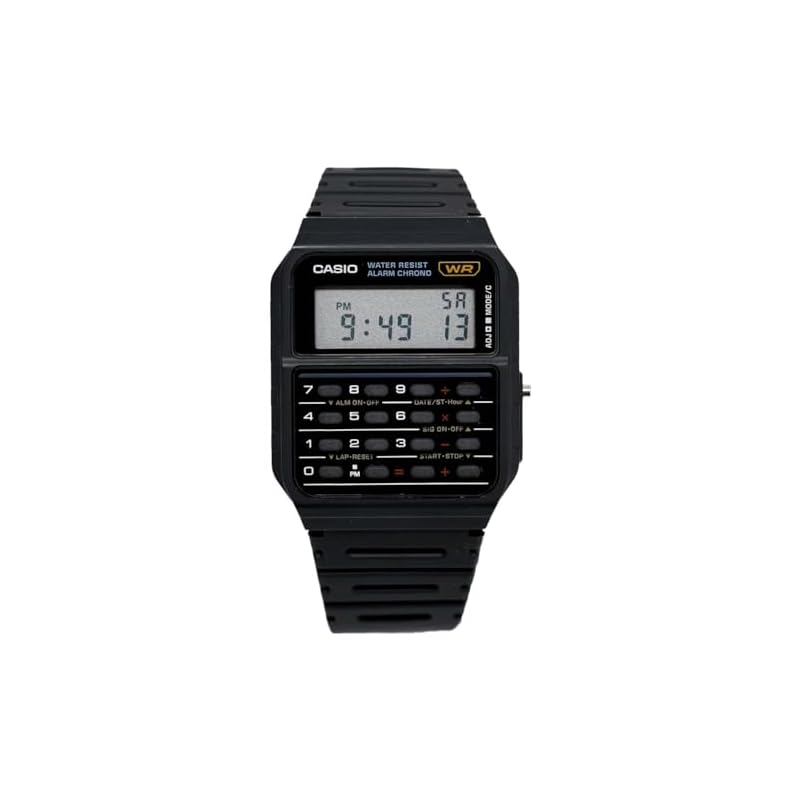 Especificaciones: Casio Serie CA53W Vintage | Banco de datos | Cronómetro 1/100 SEC | Resistente al agua | Calculadora de 8 dígitos | Tiempo dual | Banda de resina | Caja de resina | Calendario automático | Alarma diaria | Batería de 5 años