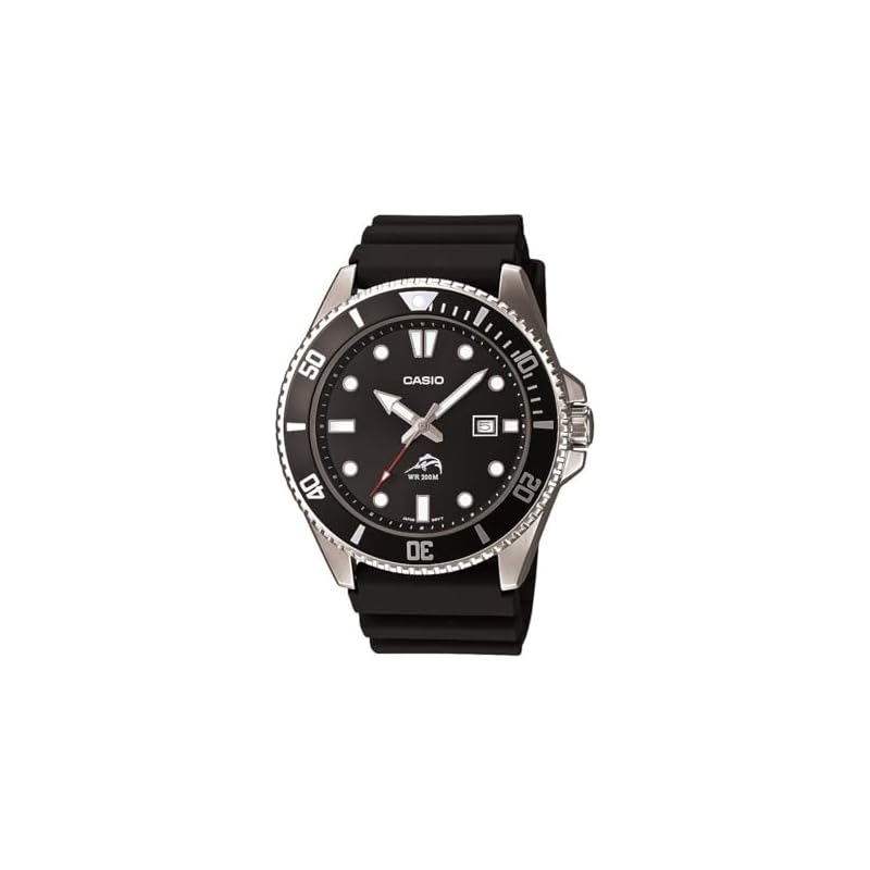 Especificaciones: Casio Serie MDV106 | Reloj analógico unisex | WR 200M | Caja de acero inoxidable | Banda de resina | Análogo de 2 manecillas (HR, Min, SEC) | Indicación de la fecha | Corona atornillada/Fondo de caja atornillado | Batería de 3 años