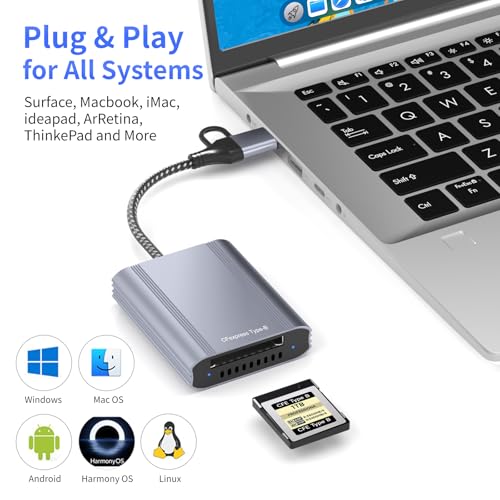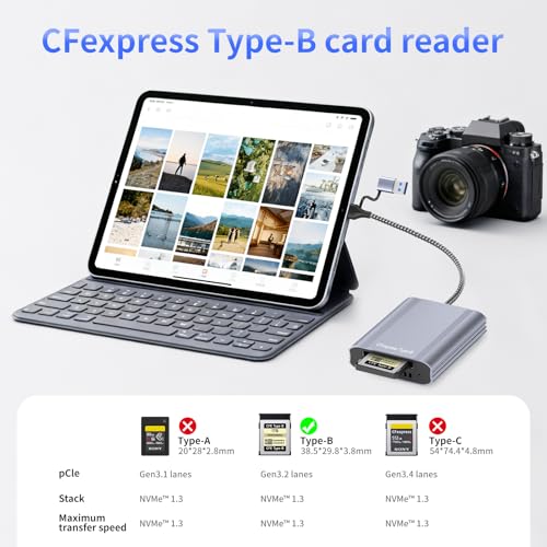 Extensive Device & OS Compatibility: This versatile CFexpress type b card reader works with a wide range of systems, including Windows, Mac, Linux, and Android. It is specifically designed for CFexpress Type B memory cards, making it a perfect tool for photographers and videographers. (Please note: It is not compatible with CFexpress Type A/C or XQD cards).