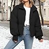 Especificaciones: Chaqueta de plumón corta acolchada de invierno para mujer, abrigo casual acolchado holgado de manga larga con cremallera hacia abajo, ropa exterior