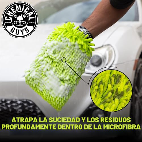 Chemical Guys MIC49302 – Manopla de microfibra de chenilla de alta calidad, sin arañazos, color verde lima, 9.6 x 2.3 x 7 pulgadas (paquete de 2)