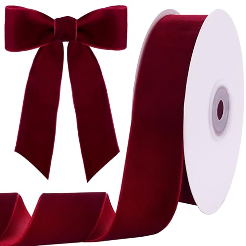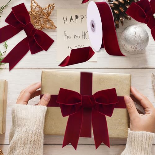 Tsorode Cinta de terciopelo burdeos de 10 yardas de 1.5 pulgadas para árbol de Navidad, cinta de Navidad de terciopelo para envolver regalos, manualidades, lazo, corona, decoración de vacaciones (borgoña)