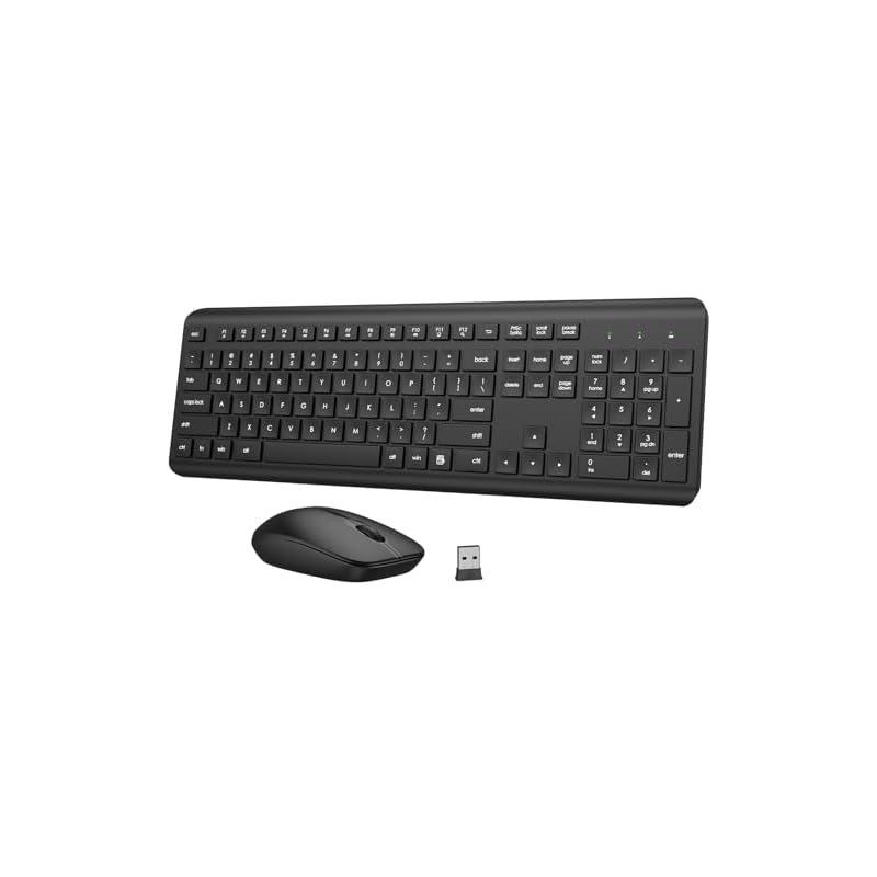 Experiencia de escritura silenciosa: las teclas de membrana suave proporcionan una experiencia de escritura silenciosa y cómoda, por lo que puedes escribir con confianza en un teclado inalámbrico diseñado para mayor comodidad, precisión y fluidez. El mouse inalámbrico adopta una tecnología de micromovimiento silenciosa, que es casi completamente silenciosa cuando se hace clic. Perfecto para espacios compartidos. No más preocupaciones por molestar a los demás.