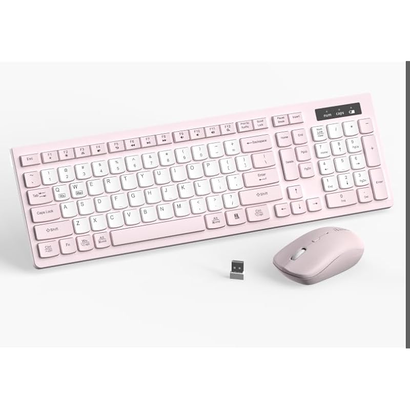 Especificaciones: Combo de teclado y mouse inalámbricos, teclado inalámbrico de tamaño completo y mouse DPI ajustable, receptor USB de 2.4 GHz, teclado y mouse para PC, Windows, escritorio, laptop (rosa y blanco-B)