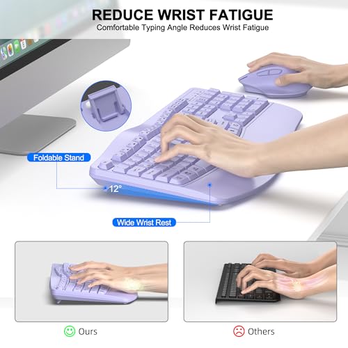 Combo de teclado y mouse inalámbricos, teclas onduladas de tamaño completo 2.4G, teclado ergonómico con reposamuñecas y mouse ergonómico inalámbrico ajustable de 3 niveles para Windows, Mac OS de