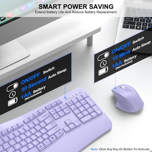 Función de ahorro de energía automático: el combo de teclado y mouse inalámbricos ULSOU cuenta con una función automática de ahorro de energía. Después de 30 segundos de inactividad en el teclado y 15 minutos de inactividad en el mouse, ambos dispositivos entran en modo de suspensión para conservar la duración de la batería. Esto extiende en gran medida la duración de la batería, y cualquier pulsación de botón activará los dispositivos nuevamente. El teclado requiere 1 batería AA, y el mouse requiere 1 batería AA. (pilas no incluidas).