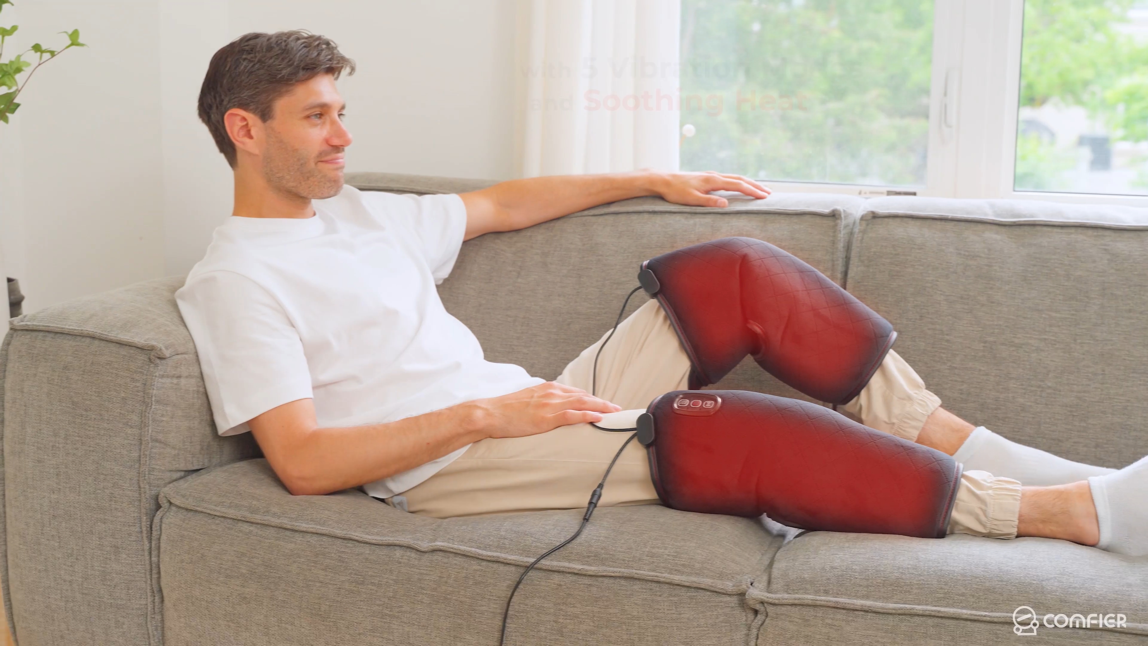 Cómodo masajeador vibrador de piernas con calor que posee 4 potentes motores de masaje para ofrecer un masaje relajante a los músculos de los tejidos. Será un buen masajeador de piernas, el masajeador de rodilla ayuda a relajar aún más el dolor y los músculos. Tiene 5 modos de masaje variables para uso individual.