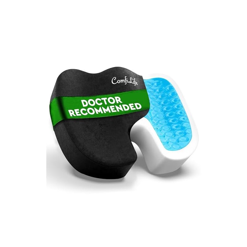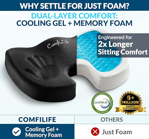 ComfiLife – Cojín prémium de gel y espuma viscoelástica para silla de oficina, escritorio y asiento de automóvil, recomendado por doctores para aliviar dolor de espalda y ciática, negro