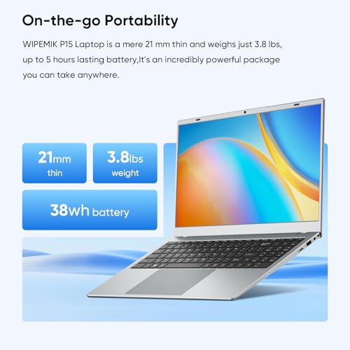 Portátil y duradero: el portátil WIPEMIK P15 cabe cómodamente en tu bolso gracias a su cuerpo de 0.827 in de grosor y 3.9 lbs de luz. eficiencia térmica de alto rendimiento con ventilador de refrigeración y tubos de calor, puede continuar funcionando de manera eficiente, este ordenador portátil es un compañero ideal para llevar a cualquier lugar.