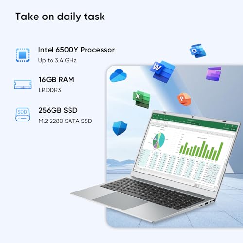 Especificaciones: Computadora portátil, 16 GB de RAM, portátil de 256 GB SSD, Intel 6500Y, pantalla IPS de 15.6 pulgadas 1080P Win11 Pro para escuela, negocios, soporte WiFi 5, BT 5.2