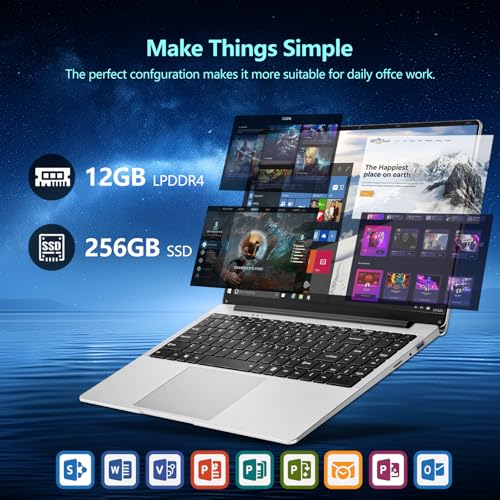 Computadora portátil, computadora portátil de 15.6 pulgadas con 12 GB de RAM 256 GB SSD, N4000 (hasta 2.6 GHz), portátil de regazo para trabajo y estudio, WiFi 2.4 y 5, BT4.2, Win 11 Pro, Mini HDMI