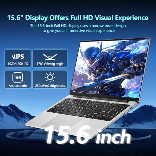 Vibrante pantalla FHD de 15,6″: La computadora portátil de 15,6 pulgadas cuenta con una pantalla Full HD (1920×1080) 16:9 con un brillo de 250 nits, lo que ofrece una claridad excepcional para la revisión de contenido profesional y el consumo multimedia. Esta computadora portátil garantiza una reproducción precisa del color y amplios ángulos de visión.