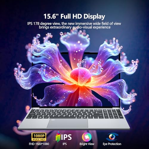 Vibrante pantalla FHD de 15.6 pulgadas y diseño elegante: con una pantalla Full HD de 15.6 pulgadas (1920 x 1080) 16:9 con brillo de 250 nits, esta computadora portátil para PC garantiza imágenes nítidas y amplios ángulos de visión. Su perfil delgado de 0.81 pulgadas, acabado plateado y construcción ligera de 3.5 lbs lo convierten en un compañero ideal para llevar.