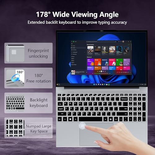 Especificaciones: Computadora portátil, computadoras portátiles de 15.6 pulgadas, N5095 Quad-Core hasta 2.9 GHz, SSD DDR4 de 16 GB de 512 GB, tapa portátil con KB retroiluminado, huella digital, pantalla FHD de 1200P