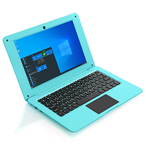 Computadora portátil con Windows 10 Mini 10 pulgadas 32GB ultrafino y ligero Netbook Quad Core CPU PC HDMI WiFi USB YouTube (azul)